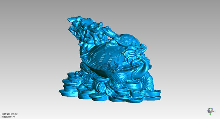1. The Dragon Tortoise is small in size, and its surface is complex and irregular (surface and contour grooves are more). Because the cultural relics can not be sprayed with imaging agents and sticking markers, the scanning difficulty is greatly increased. Many companies in the same industry can not start without a high-quality scanning program.