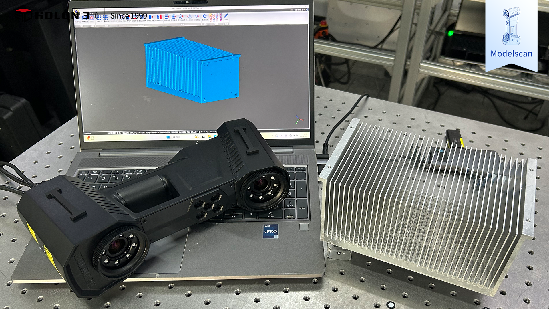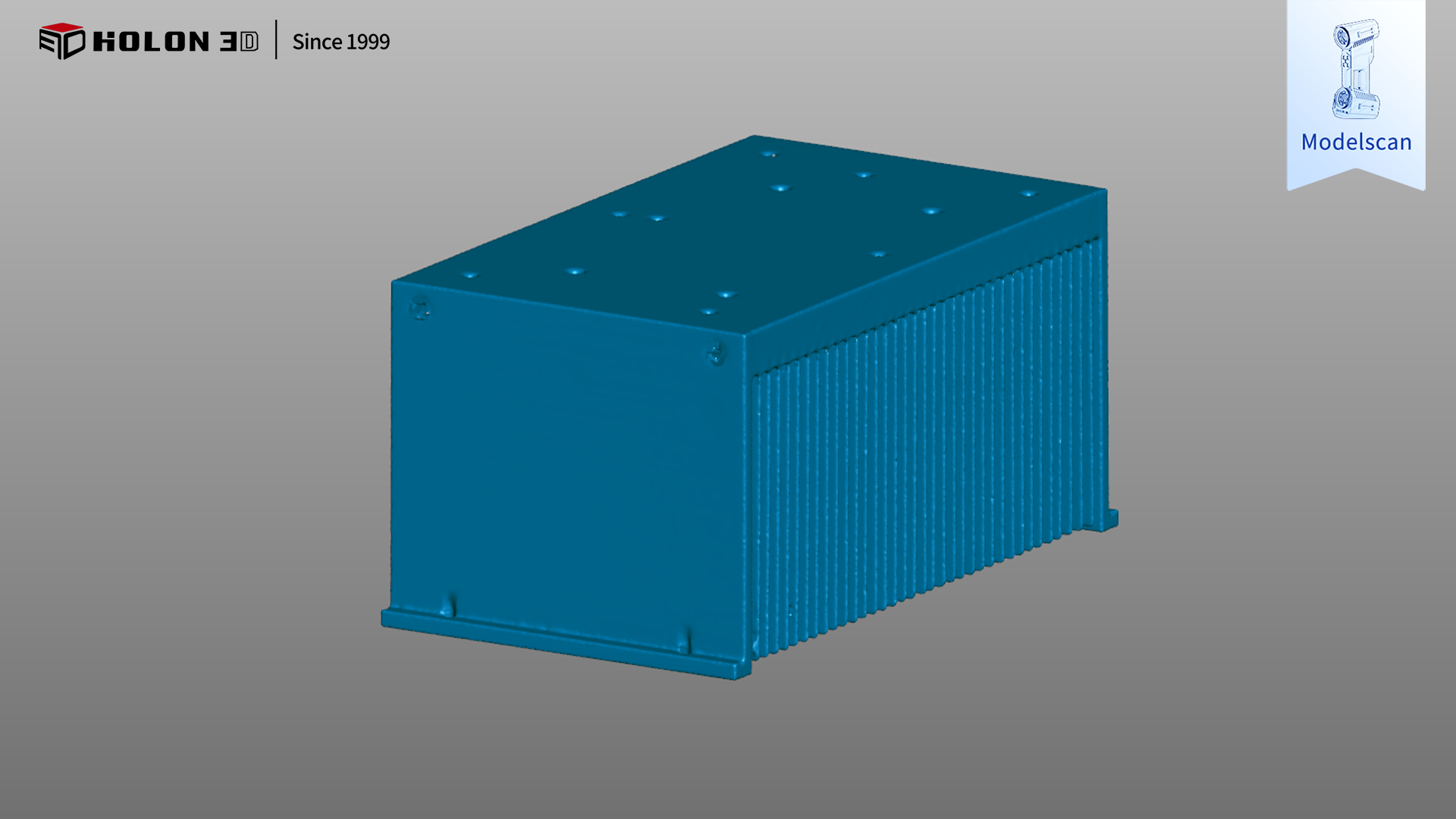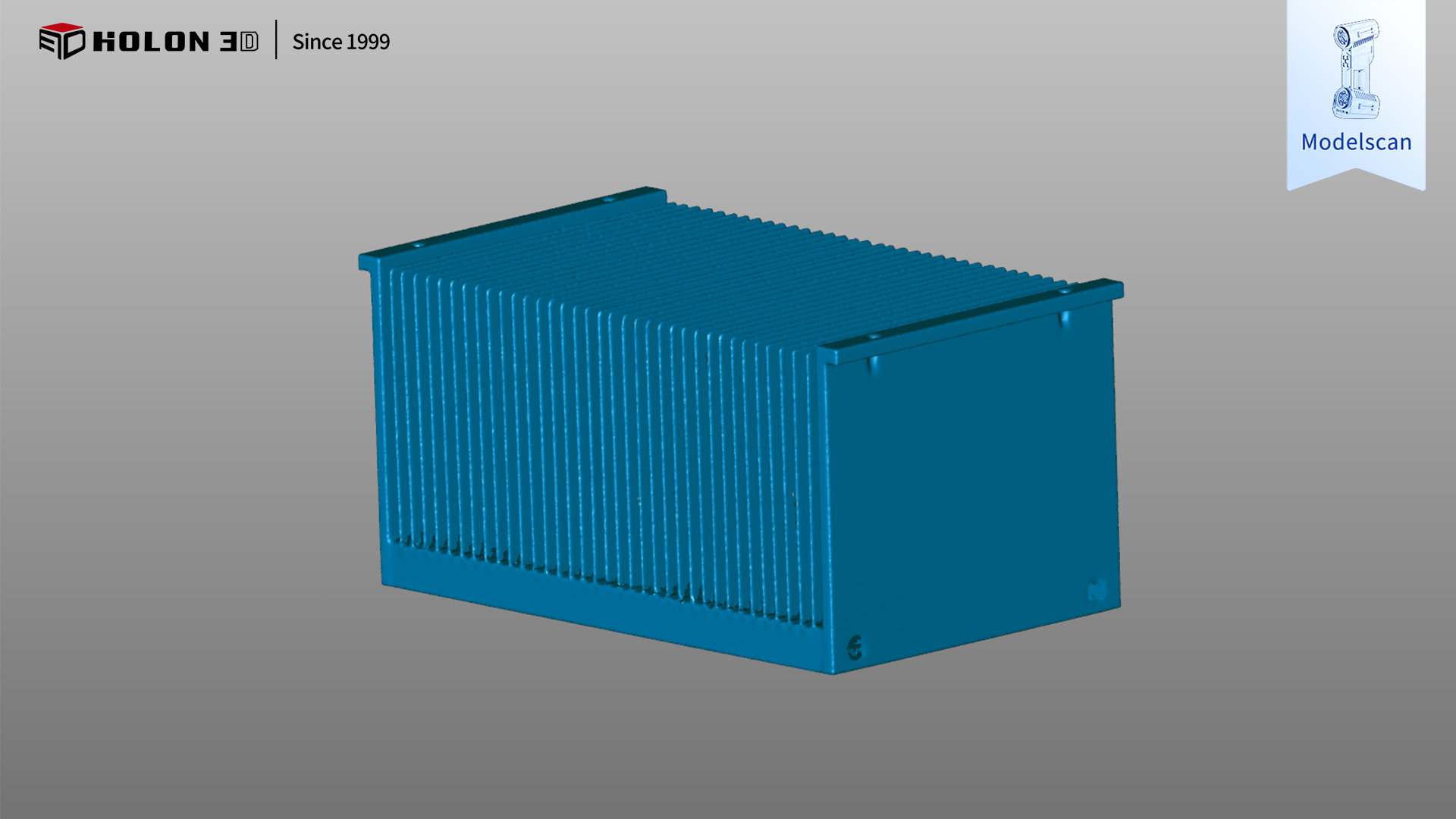 铝散热片是各类电子设备、动力系统的核心散热部件,其翅片间距、翅片厚度、基体轮廓等尺寸精度直接决定散热效率与装配适配性。客户需通过三维扫描获取铝散热片高精度、高细节还原度及完整的三维数据,与原始模型比对生成三维检测色谱图,直观量化关键尺寸公差、结构偏差等核心指标,以此科学判断加工生产是否合格。由于铝散热片表面为金属材质(易反光),且结构上包含密集细小翅片、窄间隙等复杂细节,客户对扫描精度、细节还原及数据完整性要求严苛,常规测量方式耗时耗力,难以满足需求,因此选择 HOLON 3D Model 49 手持式全蓝激光工业级三维扫描仪,为铝散热片提供精准高效的数字化检测方案。