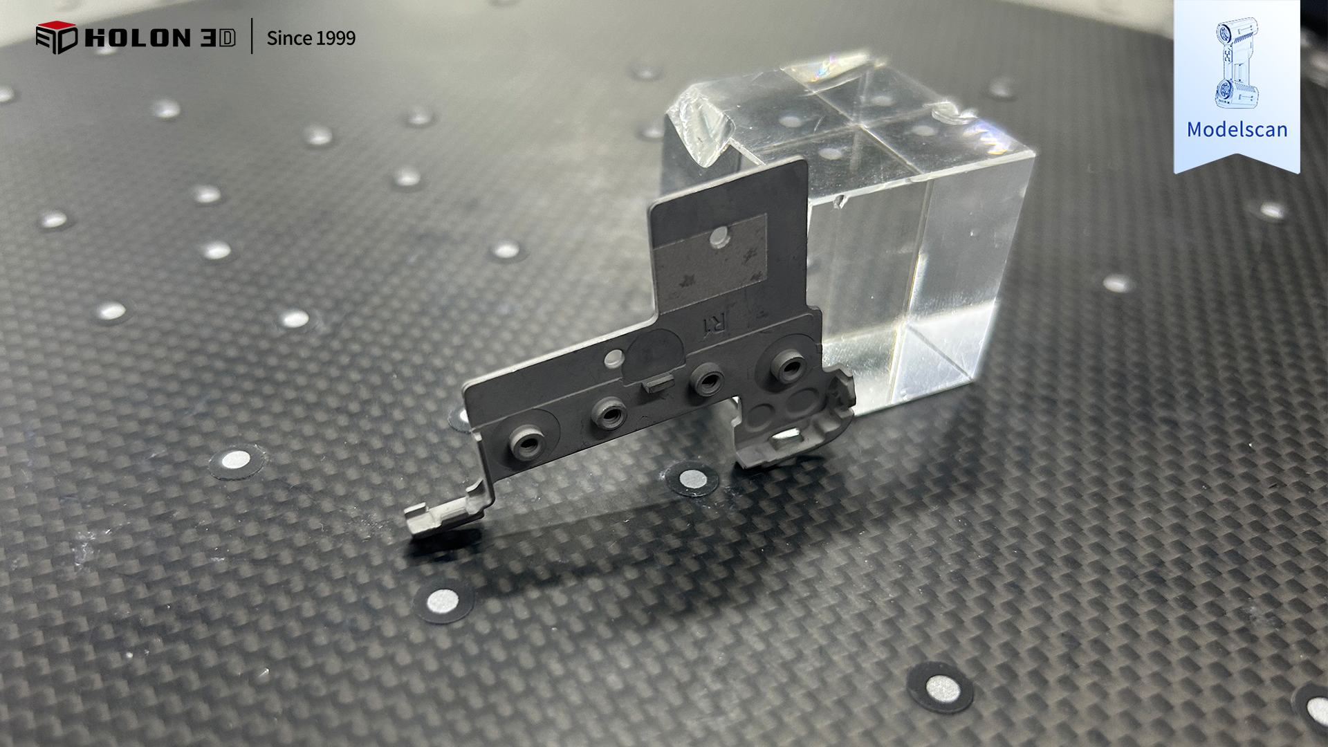 电子设备精密金属零部件是各类高端电子设备的核心组成部分,其尺寸精度、细节完整性直接决定设备的运行稳定性、装配适配性及使用寿命。客户需对这类精密金属零部件进行三维扫描,获取高精度、细节还原度高且完整的三维数据,通过与原始模型比对生成三维检测色谱图,直观量化关键尺寸公差、细微结构偏差等核心指标的误差分布,以此科学判断零部件是否合格。由于零部件材质多样(不同表面材质特性各异)、结构精密且细节丰富,客户对扫描精度、细节还原度及数据完整性要求极高,同时需适配实验室抽检、车间批量检测等多样化场景,传统测量方式难以满足需求,因此选择 HOLON 3D Model 49 手持式全蓝激光工业级三维扫描仪,为电子设备精密金属零部件的精准质量检测提供高效可靠的数字化支撑。
