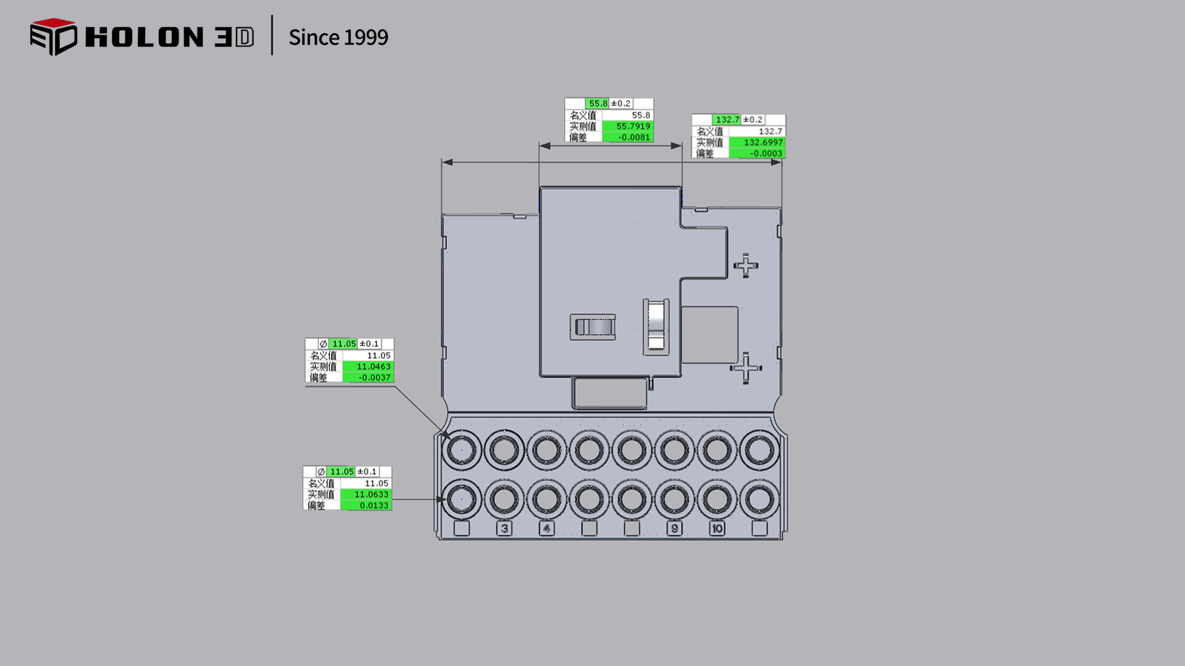 某精密塑胶件制造商为提升品控效率,与HOLON3D达成联系,通过三维扫描技术对其生产的复杂模具进行全域数据采集,实现与原始设计模型的精准误差分析,以求突破传统检测瓶颈。