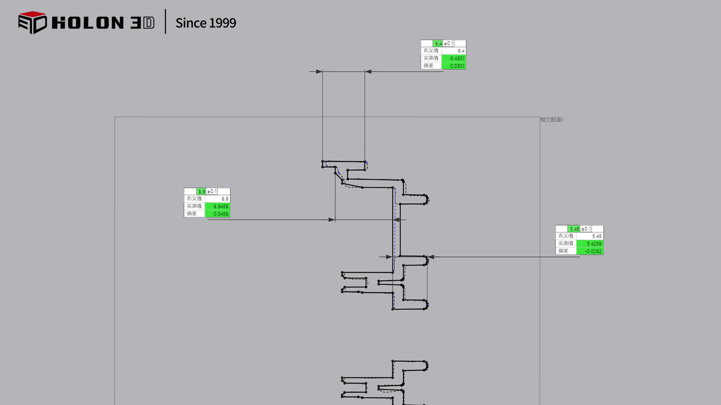 HOLON 3D采用Model 49工业级蓝光三维扫描仪,以0.02mm精度、420万点/秒速率实现工件全域数据零损捕获。其深孔模式穿透微孔结构,精密模式强化倒角细节,多扫描模式适应各种扫描情况,5分钟完成传统需8小时的检测流程,误差图对比生成,关键缺陷定位效率提升90%,助力客户实现零死角品控升级。