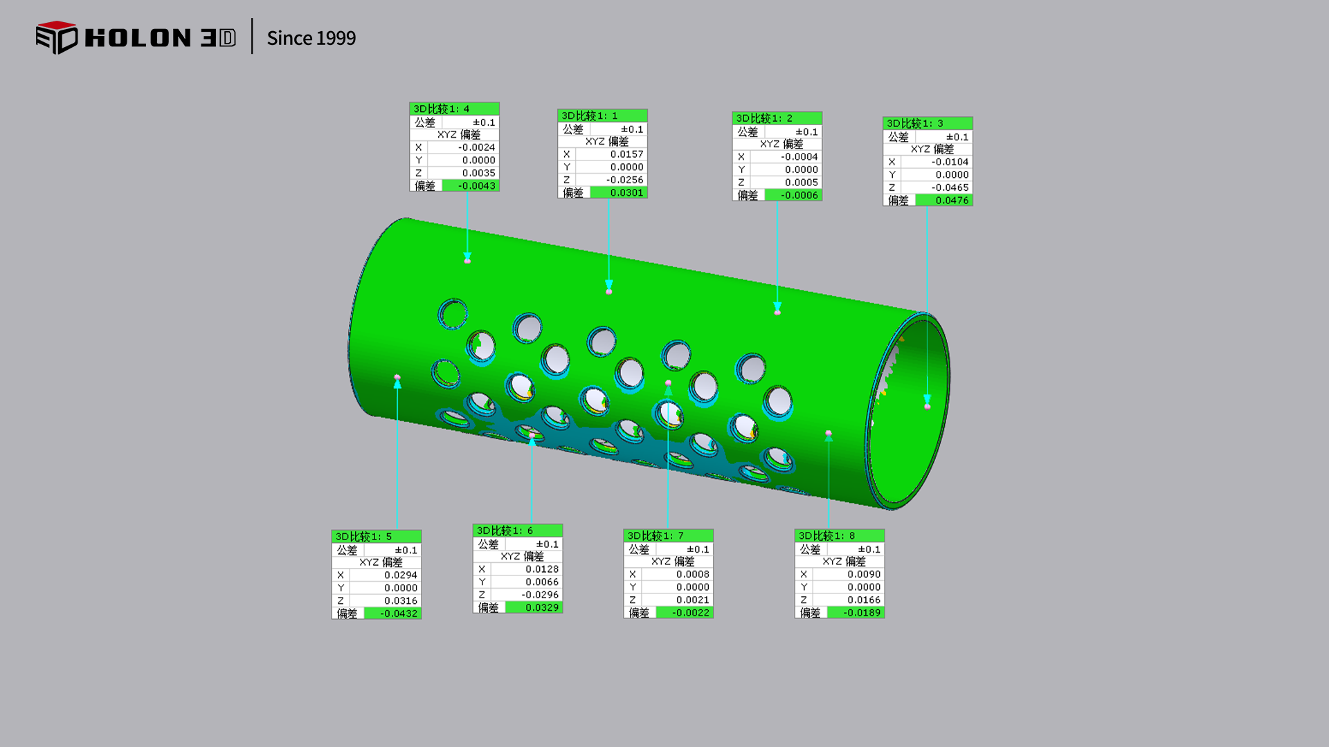 不锈钢空心管表面反光强烈,传统光学测量易受反光干扰,导致管体表面数据畸变、孔位边缘模糊,无法精准捕捉孔位尺寸与位置信息;管体上的激光切割孔数量多且分布密集,传统测量工具需逐孔手动定位测量,不仅效率极低,还易因人工操作误差导致孔位偏差数据失真,难以全面验证所有孔位的合格性;同时,客户需获取管体整体完整数据以检测形态精度,传统分段测量易产生拼接误差,破坏管体结构连贯性,无法满足完整性要求;接触式测量可能刮蹭管体表面或损伤孔位边缘,进一步影响检测数据的真实性,严重制约质量检测的准确性与效率。