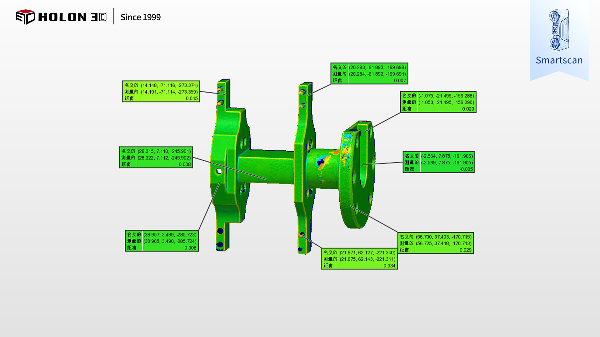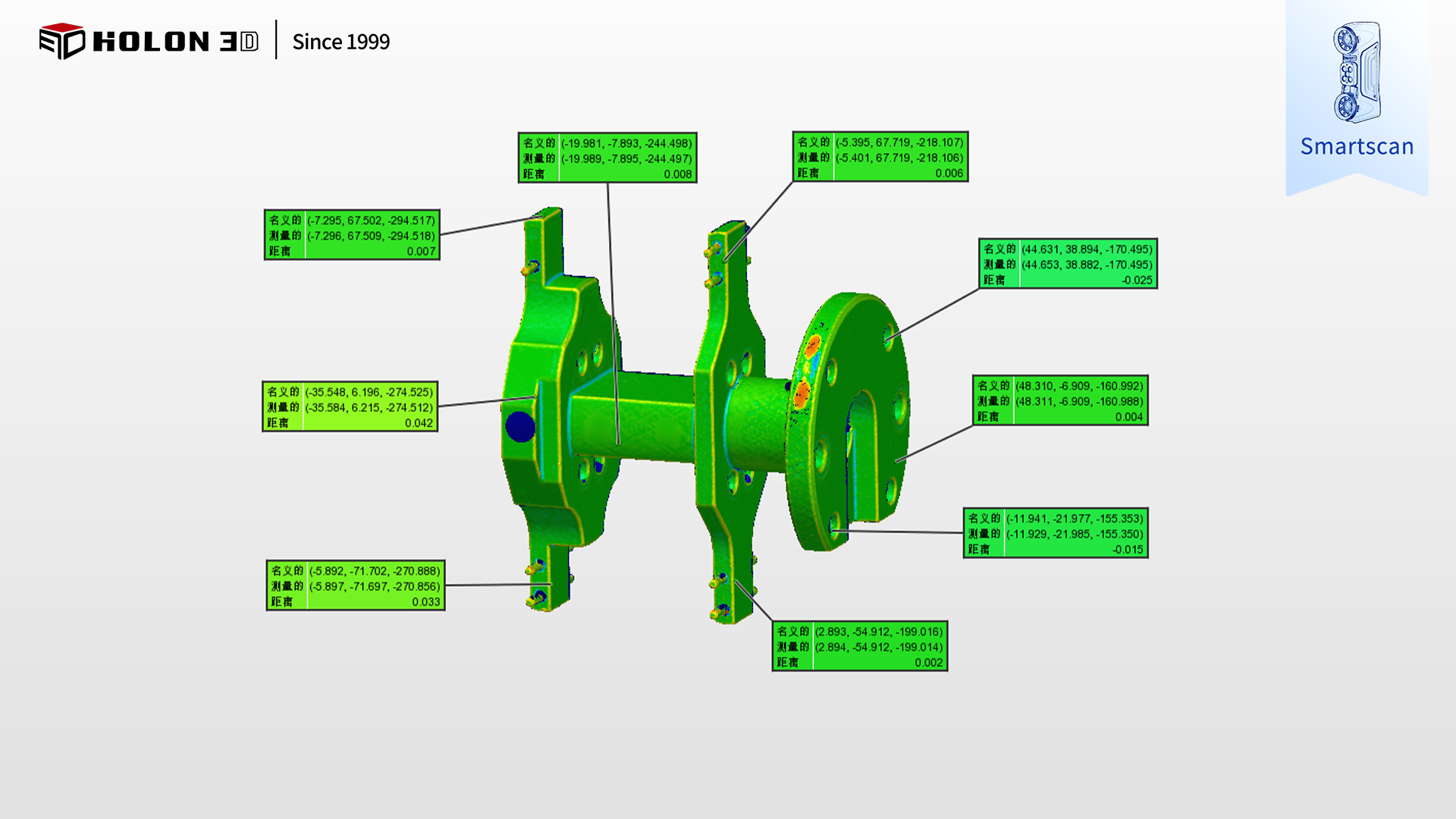 采用 HOLON3D Smart 49 手持式全蓝激光工业级三维扫描仪,可针对性解决机械装置组件检测的核心难题。该扫描仪搭载全蓝激光技术,具备超高扫描精度,能精准捕捉组件表面的细微尺寸变化,获取全表面高精度三维数据,为生成精准三维检测色谱图奠定坚实基础,确保误差量化无偏差;手持设计灵活便捷,可轻松覆盖组件各个部位,无测量盲区,保障数据完整性,让色谱图能全面呈现误差分布;高速扫描能力大幅缩短数据采集时间,配合无接触式测量方式,既避免了对组件表面的损伤,又能快速获取可靠数据,高效支撑合格性判定;扫描仪适应性强,不受场景约束,在各类复杂环境下均能稳定输出高质量数据,无需复杂前期准备。扫描后生成的三维数据精准、完整,与原始模型比对可清晰生成三维检测色谱图,能准确量化误差以判断组件合格性,完全符合客户需求,为机械装置组件的质量管控与生产工艺优化提供了可靠的数字化保障。