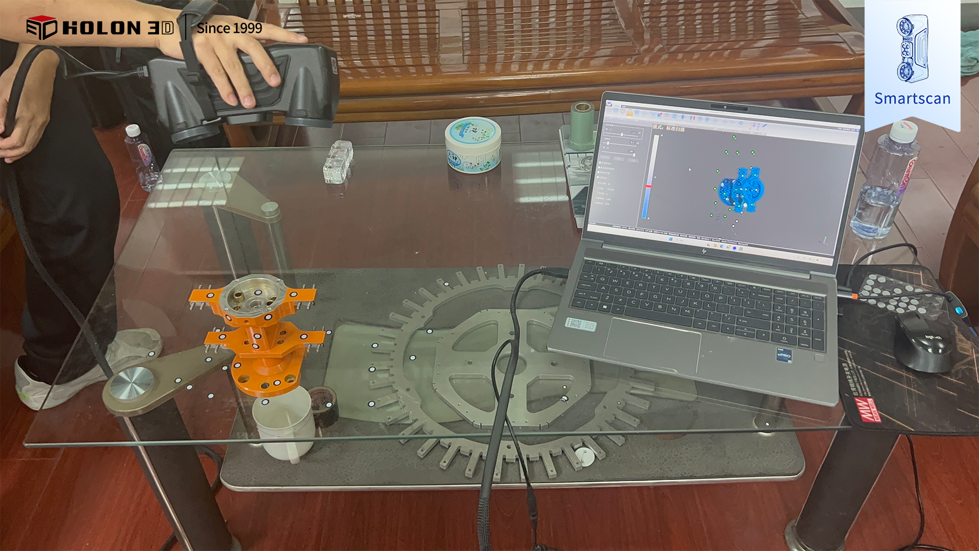 机械装置组件是各类工业设备的核心组成部分,其装配精度与结构完整性直接决定设备的运行稳定性和使用寿命。客户需对该机械装置组件进行三维扫描,获取高精度、完整的三维数据,通过与原始模型比对生成三维检测色谱图,借助色谱图直观量化误差分布,以此科学判断组件是否合格。由于客户对扫描精度和数据完整性要求极高,且需要适配不同检测场景,传统测量方式难以满足需求,因此选择 HOLON3D Smart 49 手持式全蓝激光工业级三维扫描仪,为机械装置组件的精准质量检测提供高效可靠的数字化支撑。