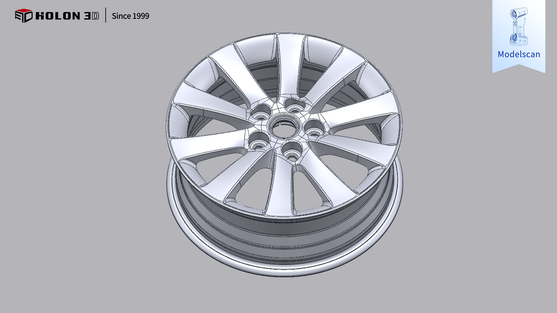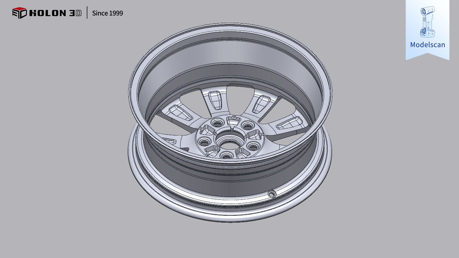 汽车轮毂作为车身核心承载与传动部件,其轮辋尺寸精度、辐条结构完整性及曲面轮廓精度直接决定行车安全性、轮胎适配性与行驶稳定性。客户需对该汽车轮毂进行三维扫描,获取高精度、完整的三维数据,通过与原始模型比对生成三维检测色谱图,直观量化轮辋直径、辐条厚度、安装孔位公差及曲面弧度等关键部位的误差分布,以此科学判断轮毂是否合格。由于客户对扫描精度、数据完整性要求极高,且需适配车间抽检、生产线质检等多样化检测场景,传统测量方式难以满足需求,因此选择具备工业计量级精度的 HOLON3D Model 49 手持式全蓝激光工业级三维扫描仪,为汽车轮毂的精准质量检测提供高效可靠的数字化支撑。