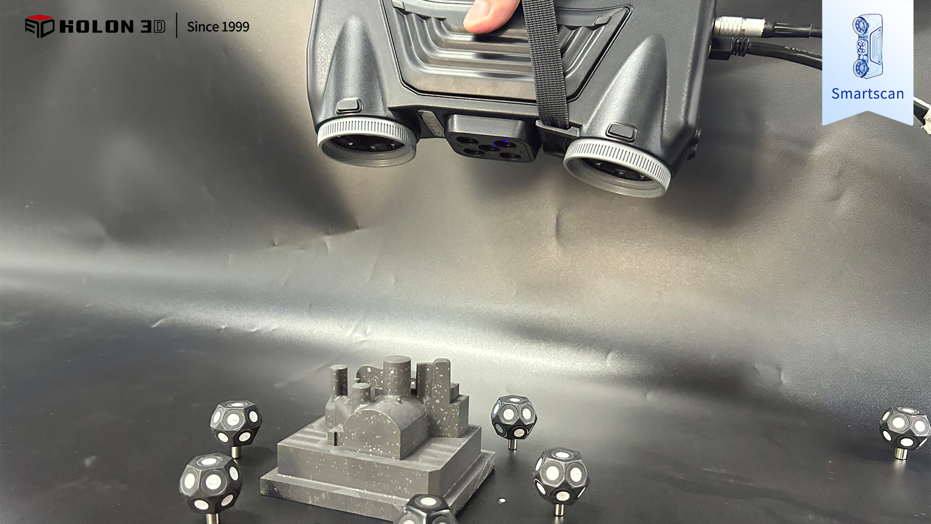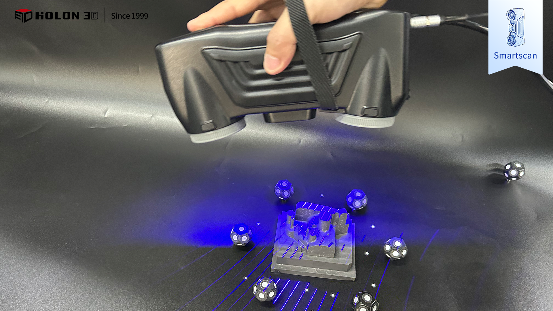 石墨材质模具胚体是精密成型加工的核心工装基材,其外形轮廓、型腔结构精度直接决定后续模具加工质量。客户需通过三维扫描获取胚体高精度完整数据,与原始模型比对生成三维检测色谱图,量化误差以判断加工是否合格。因客户对扫描精度、细节还原度要求严苛,传统测量方式难以满足,故选择 HOLON3D Smart 49 手持式全蓝激光工业级三维扫描仪提供数字化检测方案。