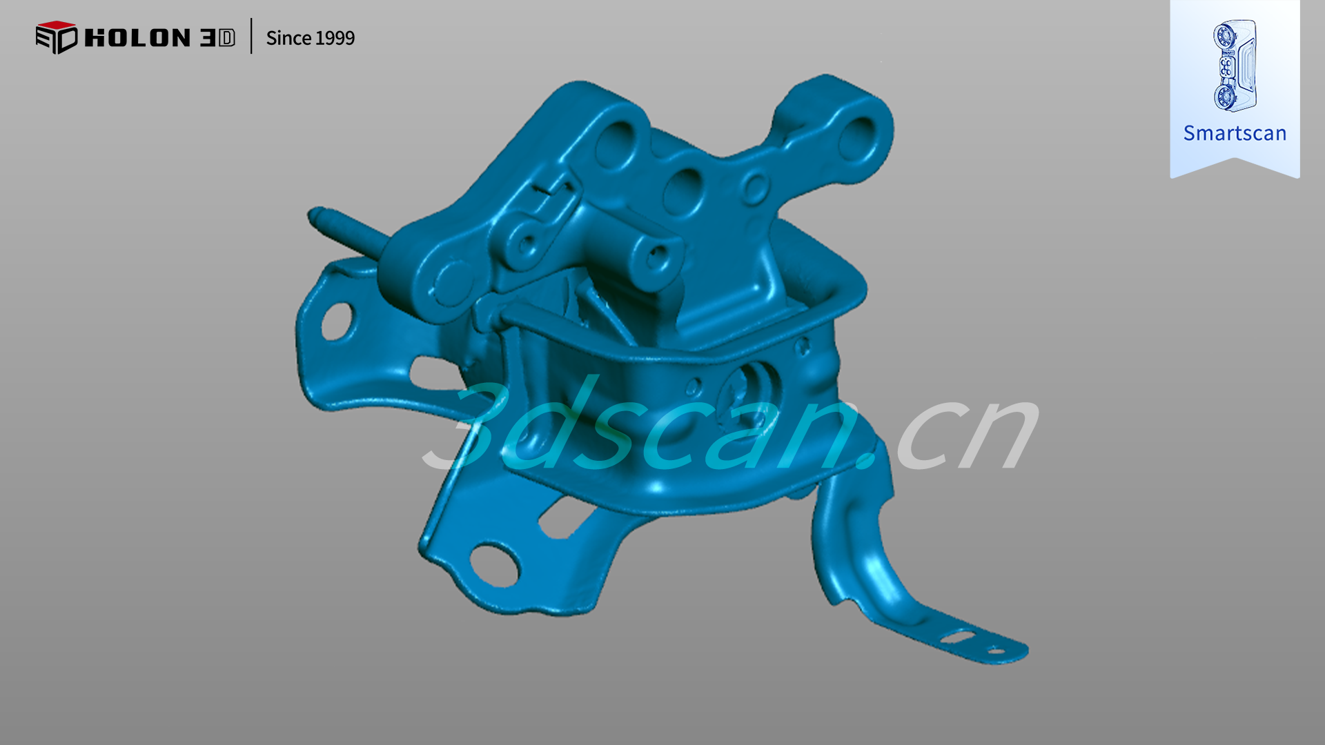 发动机支架是保障发动机稳定安装与动力传导的核心承载部件,其结构精度直接影响发动机装配适配性与整车运行稳定性。客户需通过三维扫描获取支架高精度完整数据,与原始模型比对生成三维检测色谱图,量化误差以判断加工是否合格。因客户对扫描精度、细节还原度及完整性要求严苛,传统测量方式难以满足,故选择 HOLON3D Smart 49 手持式全蓝激光工业级三维扫描仪提供数字化检测方案。