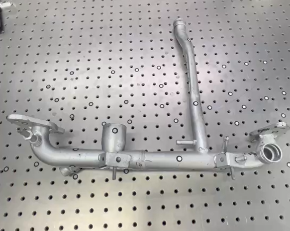 汽车进气歧管是发动机进气系统的核心部件,其气道形状、内壁光滑度、法兰面平面度及安装孔位精度,直接决定发动机的进气效率、混合气形成质量及动力输出稳定性。客户需对该进气歧管进行三维扫描,获取高精度、完整的三维数据,通过与原始数模比对生成三维检测色谱图,直观量化法兰面贴合度、气道入口位置偏差、关键截面轮廓度及整体变形趋势等关键指标,以此科学判断进气歧管是否满足装配与性能要求。