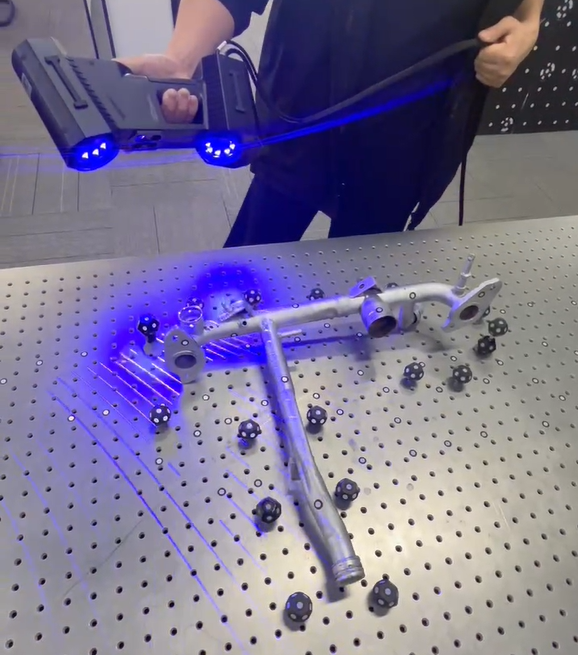 由于进气歧管多为黑色注塑件或铝合金压铸件,表面易产生反光或呈哑光状态,且其内部包含多个弯曲气道和复杂隔板结构,传统检具或三坐标测量难以触及内部型腔,无法高效获取完整形貌数据。客户对扫描精度、数据完整性及检测效率要求极高,且需适配模具T1试模、产线首末件检验、来料质量检测及装配问题分析等多样化场景。