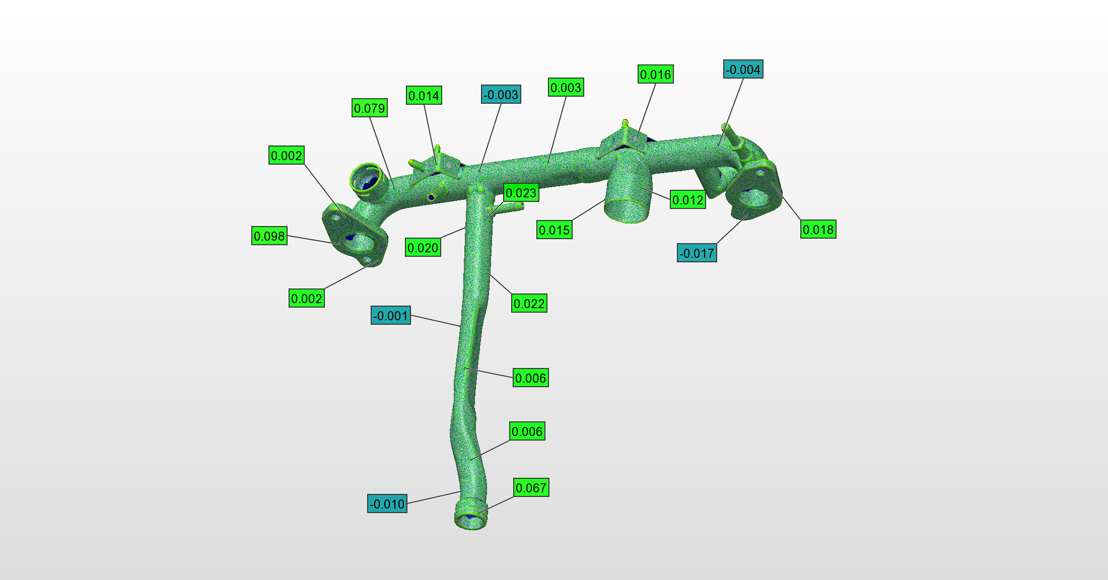 它以420万点/秒的速度快速获取管道完整三维点云数据,配合专业检测软件生成全局色谱偏差图与关键截面分析报告,精准量化翘曲变形、平面度误差、位置度偏差及局部缺陷,为进气歧管的质量管控、模具修正与注塑工艺优化提供高效可靠的数字化支撑。