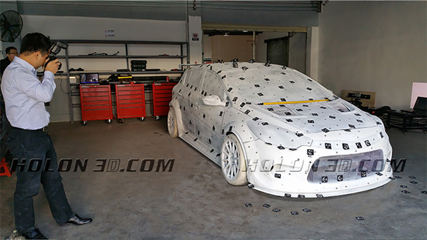 华朗三维受某知名赛车公司的委托,扫描赛车整车的三维数据,优化赛车性能。在了解实际情况后,华朗三维技术工程师使用三维摄影测量系统HL-3DP + 三维扫描仪HL-3DW,快速获取汽车车身以及车轮拱数据,优化赛车风阻。