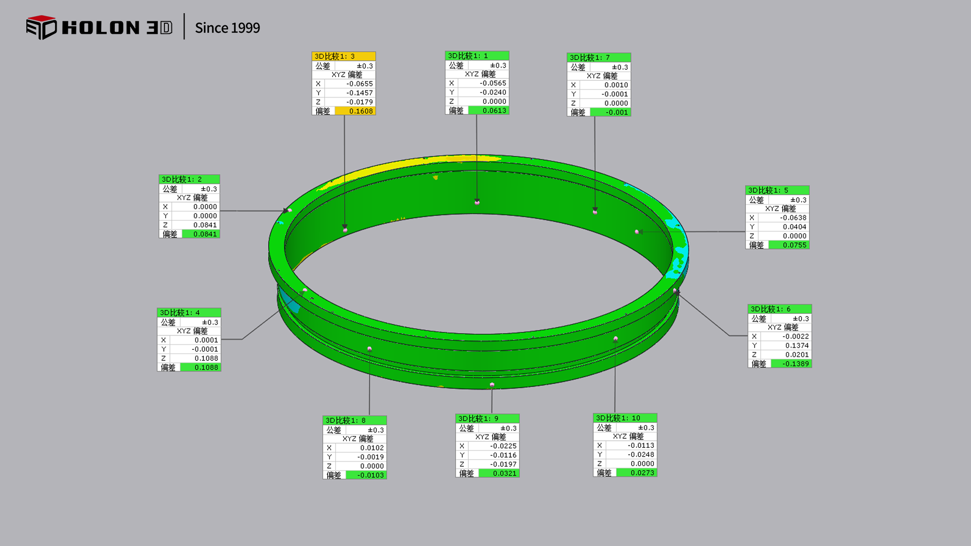 采用 HOLON 3D Smart 49 手持式全蓝激光工业级三维扫描仪,针对性破解圆形工件扫描检测的核心难题。该扫描仪搭载全蓝激光技术,具备超高扫描精度,能精准捕捉圆形工件表面的细微形态变化,清晰还原工件表面特征,为生成精准三维检测色谱图提供可靠数据基础;手持设计灵活便捷,不受 1.3 米大尺寸限制,可围绕工件自由移动扫描,全面覆盖工件全表面,无测量盲区,保障数据完整性,确保色谱图能完整呈现误差分布;高速扫描能力大幅缩短数据采集时间,配合无接触式测量方式,既避免了对工件表面的损伤,又能快速获取全表面三维数据,高效支撑合格性判定工作;扫描仪适应性强,不受场景约束,在车间、仓库等复杂环境下均能稳定输出高质量数据,无需复杂前期准备。扫描后生成的三维数据精准、完整,与原始模型比对可清晰生成三维检测色谱图,能准确量化误差以判断工件合格性,完全符合客户需求,为圆形工件的质量管控与生产工艺优化提供了高效且可靠的数字化保障。